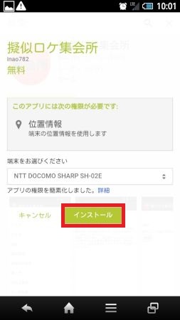 Android(アンドロイド)なら「Google Playストア」から、「擬似ロケ集会所」を検索して「インストール」をタップします。