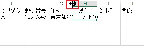 文字を入力するとセルに表示される文字が切れてしまうことがあります。そのようなときは、列番号の右側に境界線にマウスポインターを移動させると左右に矢印がある表示に変わりますので、その状態でダブルクリックします。