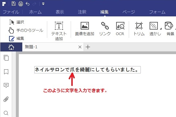 クリックするとテキスト編集が可能になるので文字を消したり、入力したりします。